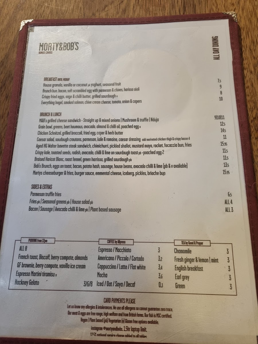 A Cozy Culinary Gem in Coal Drops Yard - Morty & Bob's Menu Review
